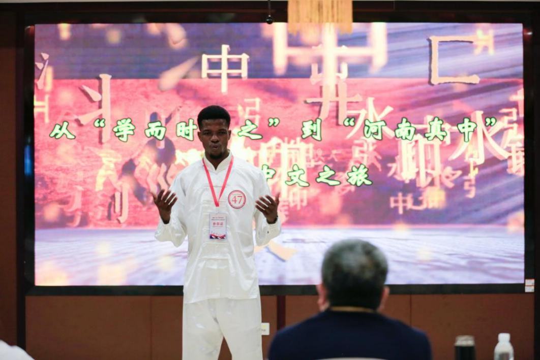 比赛中,选手们围绕“魅力汉语,‘豫’你同行”这一主题,通过主题演讲、即兴问答以及中华才艺展示等多元环节,生动诠释了他们对汉语的热爱以及对中华文化的深刻理解。在主题演讲环节,我校留学生乔何雅以《汉字之美:我与河南的中文情缘》为题,讲述了自己在河南学习汉语的经历,深入探讨汉字的独特魅力,展现了她对中文的热爱和对中原文化的深厚情感;司路则以《从“学而时习之”到“河南真中”:我的中文之旅》为题,分享了自己从初学汉语到融入河南文化的成长历程,传递出对汉语学习的执着与热情。才艺展示环节,乔何雅深情演绎的歌曲《我爱你中国》打动了现场评委与观众,歌声中充满了她对中国的热爱与敬意;司路则现场展示了八段锦的独特魅力,通过刚柔相济的动作,展现了中国传统功夫文化的深厚底蕴,赢得了观众的阵阵掌声。
