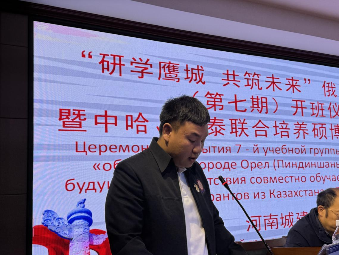 李青岭代表学校对远道而来的国际学子表示热烈欢迎,他指出,河南城建学院作为城建特色鲜明的本科院校,始终坚持开放办学理念,积极拓展国际合作空间。哈萨克斯坦阿拉木图技术大学、泰国素万那普皇家理工大学与我校友谊深厚,联合培养硕、博生项目的实施,标志着相互之间的合作迈入新阶段。他希望各位国际学子在华期间学有所成、满载而归,成为中外文化交流的友好使者。