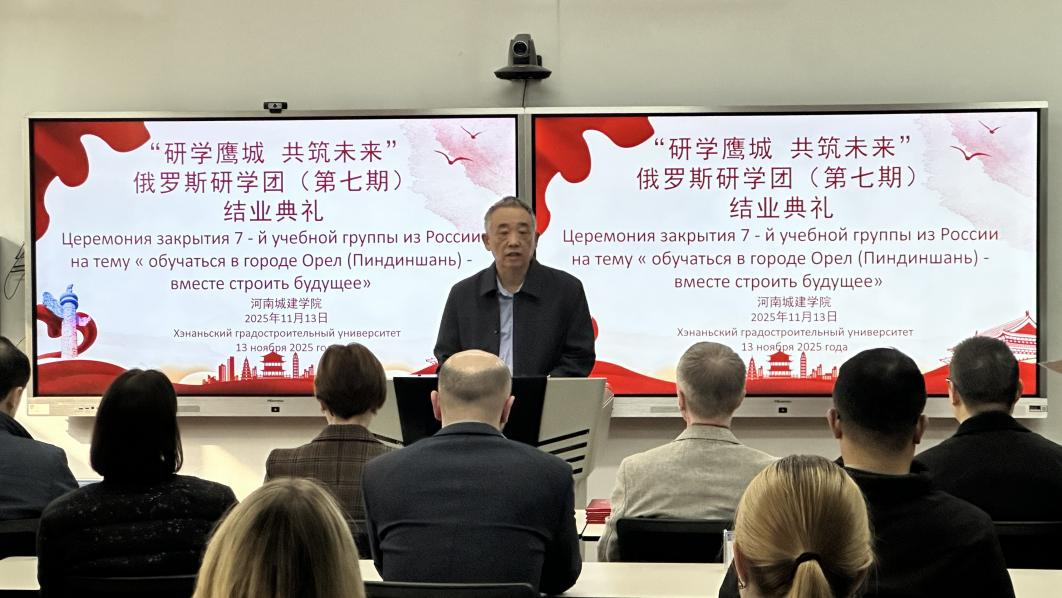11月13日上午,俄罗斯圣彼得堡国立建筑工程大学研学团(第七期)结业典礼在和谐校区1号楼207智慧教室举行。俄罗斯圣彼得堡国立建筑工程大学领导与教师代表团、我校国际教育学院负责人、教师代表及全体研学团学员共同出席。