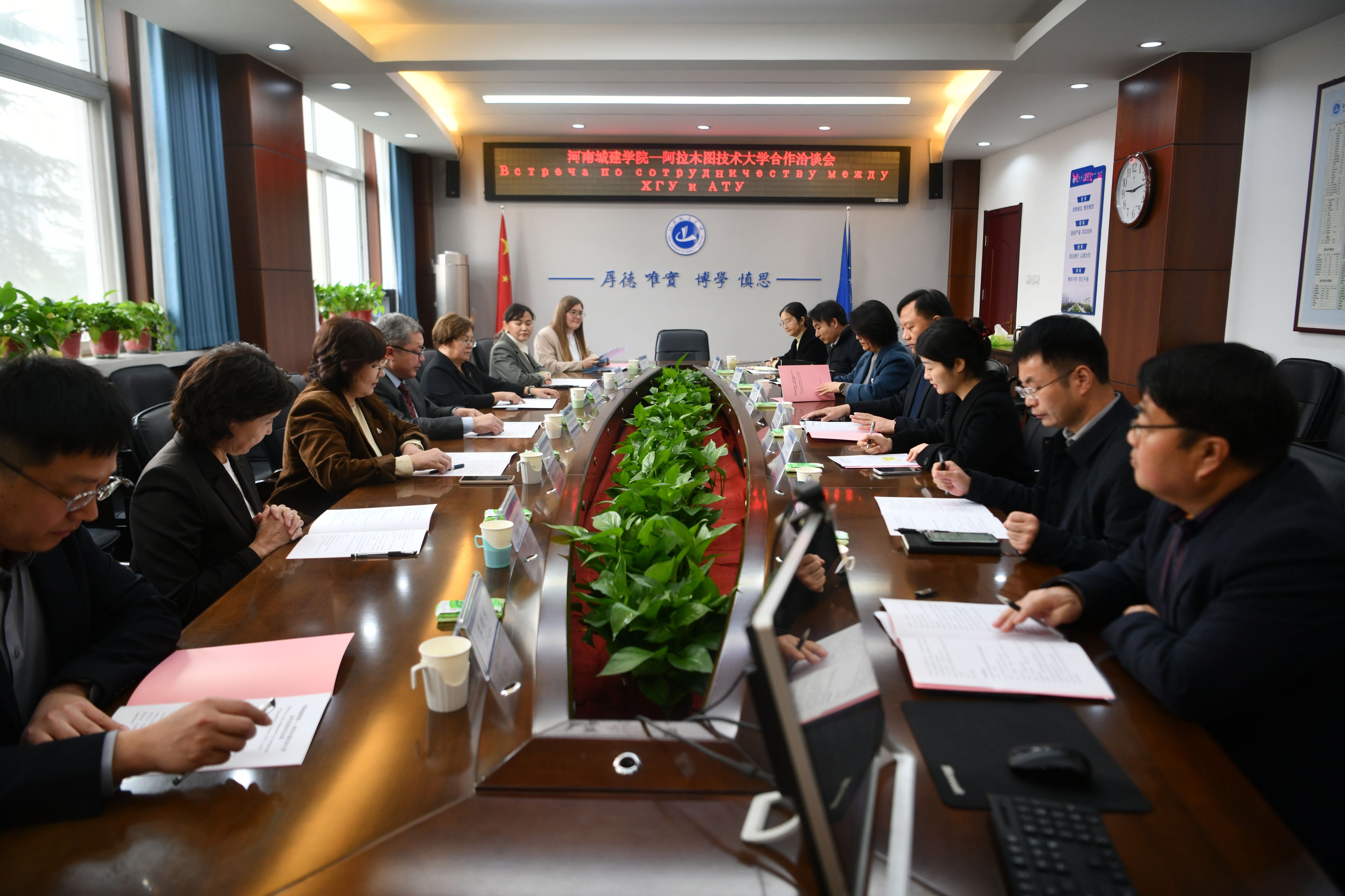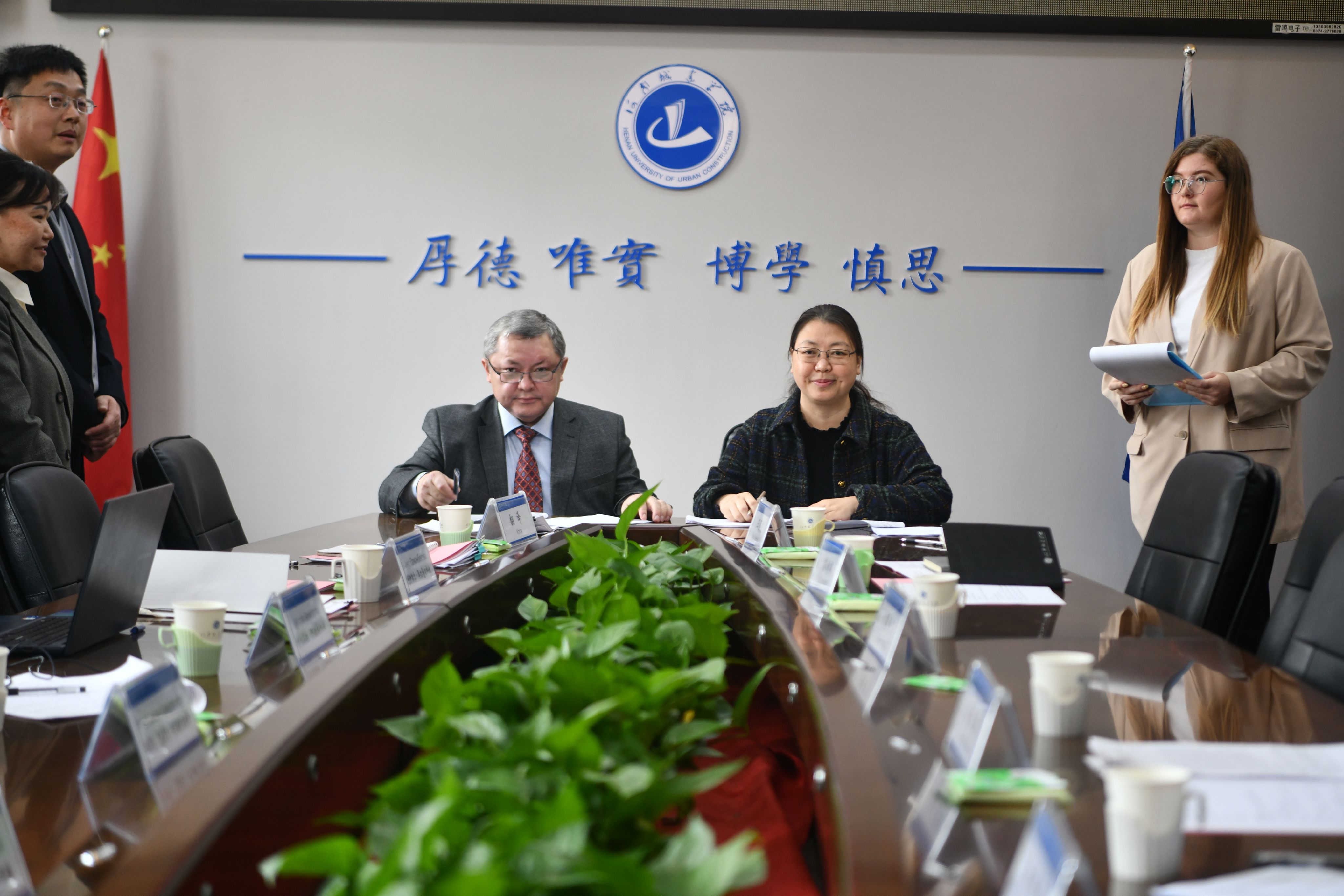 随后,两校合作洽谈会在学校行政楼第一会议室举行。副校长孙玉周出席会议,电气与控制工程学院院长董燕飞、教务处副处长万祥云、计算机与数据科学学院副院长苏靖枫、生命科学与工程学院副院长王莲哲、中哈项目联络人李晓东以及各学院相关人员参加了会议。会议由我校国际交流与合作处副处长(国际教育学院副院长)刘晓燕主持。